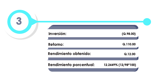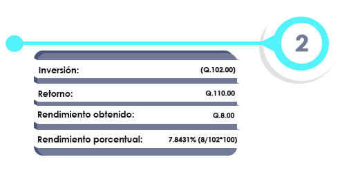 Un inversionista compra un bono con un valor nominal de Q.100.00, a un precio de Q.100.00; este bono tiene un cupón o tasa de interés de 10.00%, lo que equivale a Q.10.00 anualmente. Esto significa que el bono fue vendido a la par.